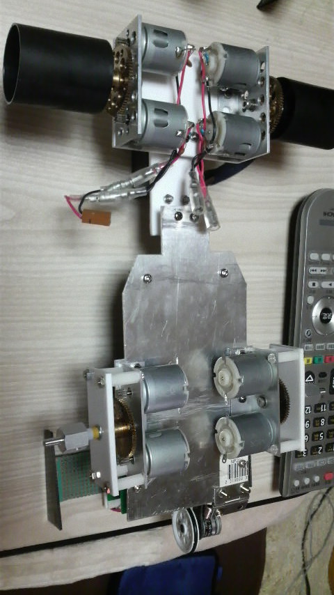 今までの疾風怒濤バージョンのモータギアボックス構造で製作しました。受け軸側にカーボンではないものを今回は選択。